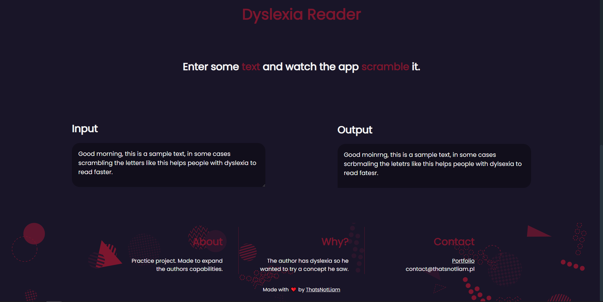 A web application that scrambles given words every 600ms. Sometimes the sentence is easier to read by doing that.